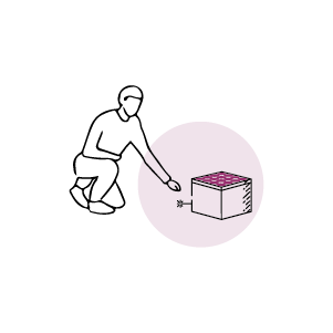 Batterien auf ebenen Untergrund stellen und seitlich sichern. Flaschen für Raketen in die Getränkekiste – nur so kann nichts kippen.Mehr Abstand, mehr Show.